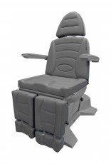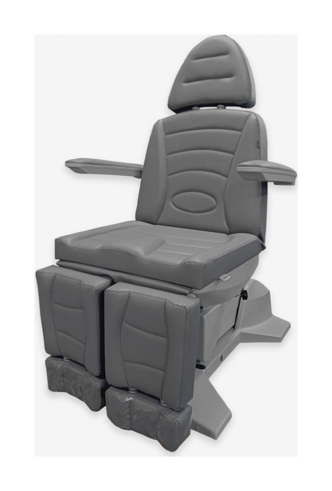 Педикюрное кресло оснащено тремя электромоторами, обеспечивающими регулировку высоты, угла наклона спинки и угла наклона сиденья. Опоры для ног фиксируются при помощи газ-лифтов. Кресло легко раскладывается в горизонтальное положение, образуя ровную поверхность. Надежная конструкция системы подъема обеспечивает высокую устойчивость кресла даже при максимальной высоте. Откидывающиеся подлокотники делают более удобным процесс посадки клиента. Управляется при помощи ручного проводного пульта.