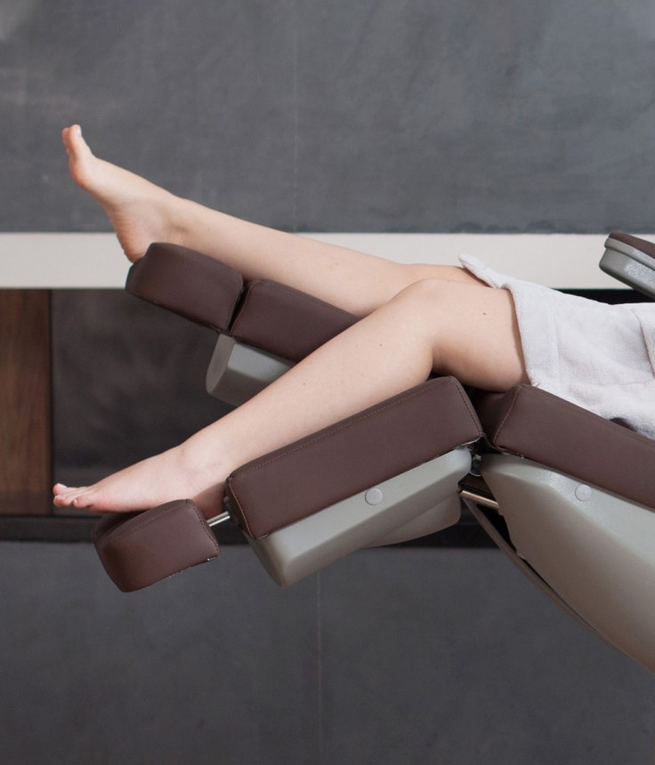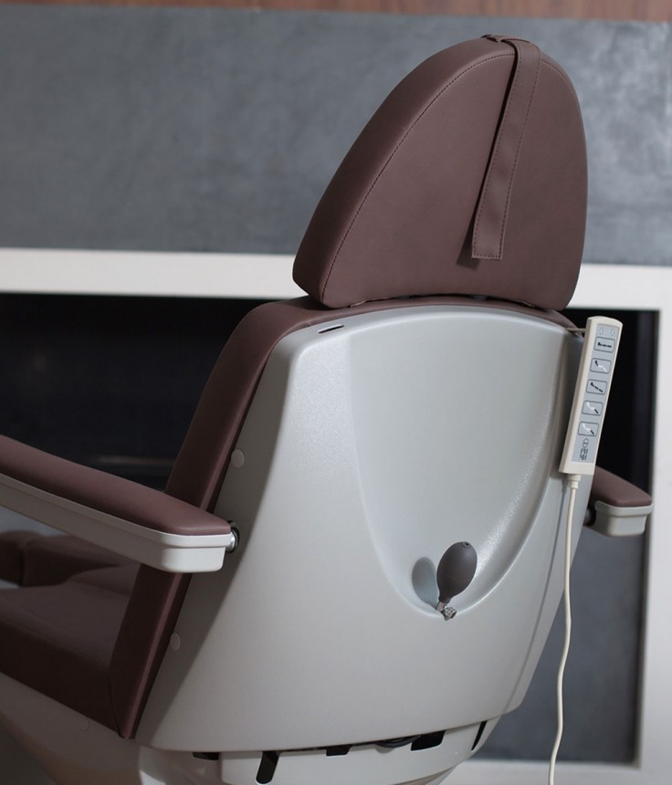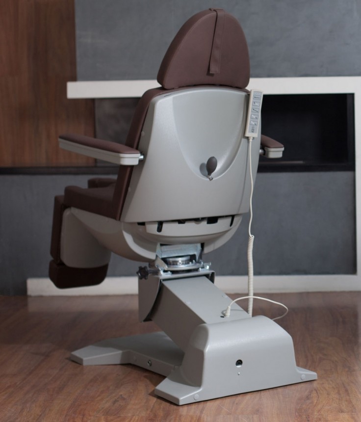 Педикюрное кресло оснащено тремя электромоторами, обеспечивающими регулировку высоты, угла наклона спинки и угла наклона сиденья. Опоры для ног фиксируются при помощи газ-лифтов. Кресло легко раскладывается в горизонтальное положение, образуя ровную поверхность. Надежная конструкция системы подъема обеспечивает высокую устойчивость кресла даже при максимальной высоте. Откидывающиеся подлокотники делают более удобным процесс посадки клиента. Управляется при помощи ручного проводного пульта. Дополнительно при производстве могут быть установлены различные опции.